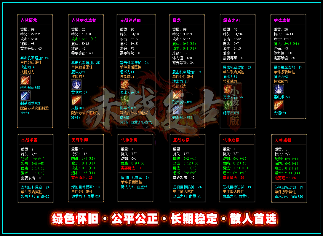 【版本介绍】:赤月+3以上5件(不含幸运项链)会触发套装属性,赤战剑甲有套装属性绝不变态!
